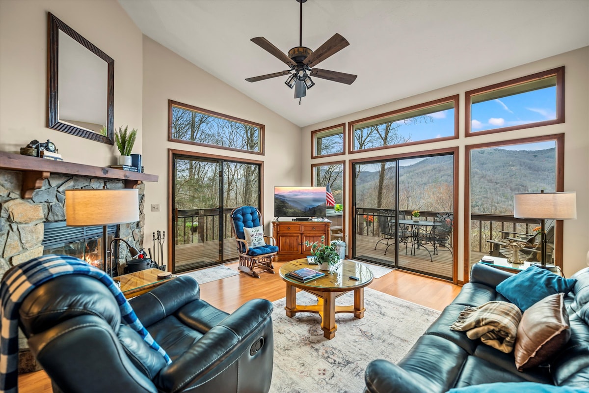 Welcome! This luxury treehouse home has floor to ceiling windows with 360 * views of the NC Smoky Mountains. The amazing open floor plan has a huge fully equipped kitchen to hang out and relax with your friends and family. Enjoy the sunrise/sunset from bed or on the wrap around porch. Sit by the outdoor fire pit with a glass of wine and share some stories or read a book while overlooking the mountains. Enjoy air hockey/ping pong/arcade games and karaoke. Paved road access to home.