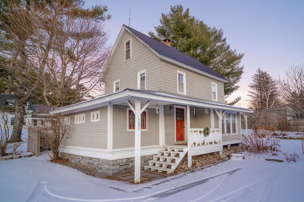Wake up to brisk mountain air with a cup of coffee and moose in the front yard... This house is a sanctuary, ideal for ski trips, hiking, leaf peeping, wine, beer, and cheese tasting, shopping and sugar house adventures. This is a place to unwind with friends and family. Sit in front of the cavernous fire place and watch the flames twist up the 18ft, handmade, stone hearth. With three private bedrooms, two bathrooms, a futon, and 10ft dining table, this house comfortably sleeps and feeds 8.