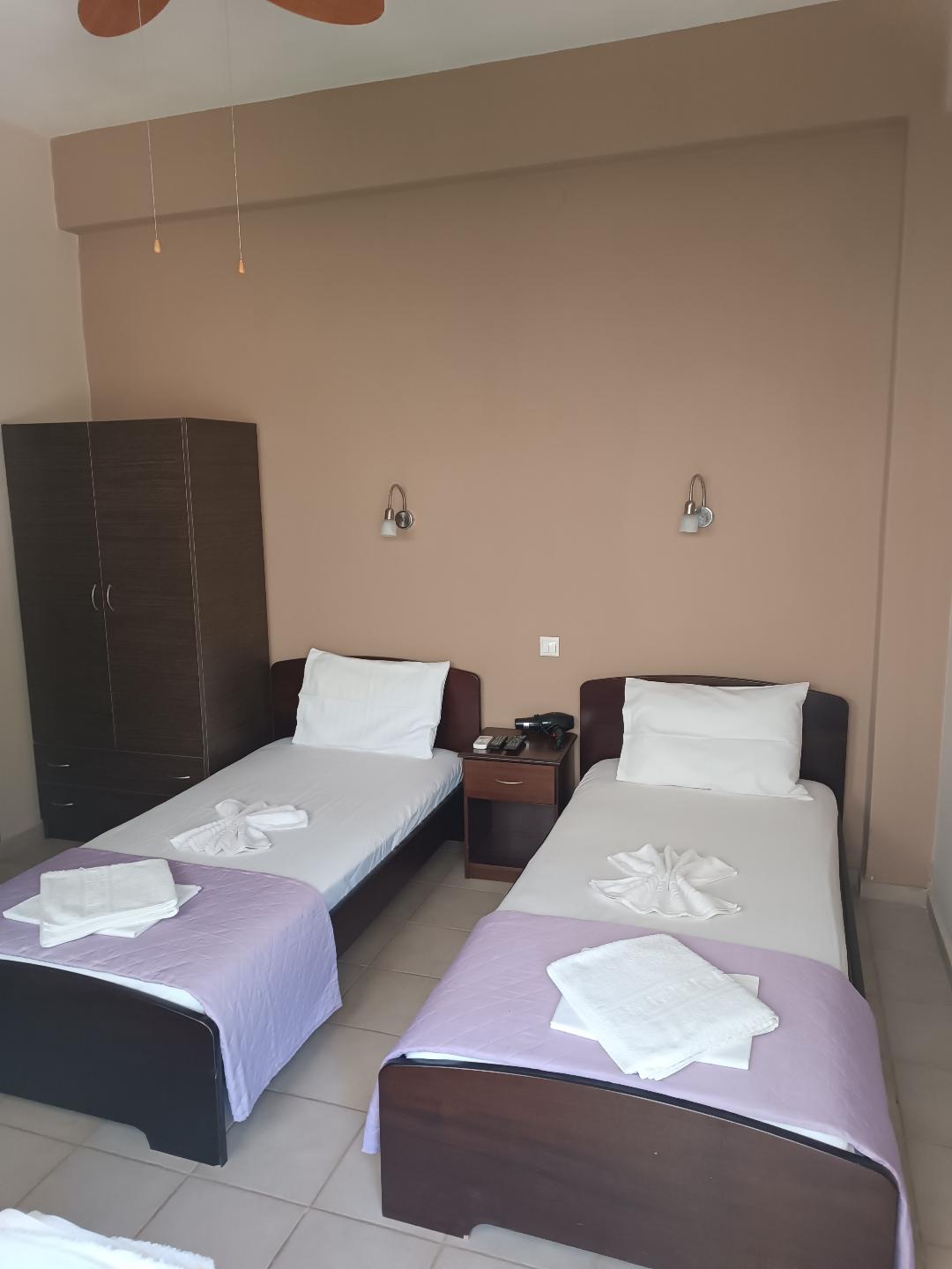 The accommodation is located at the southern tip of the Pelion peninsula and offers a total of 11 rooms, all with balconies and sea views. Each room is approximately 14.5 to 16 square meters in size and is equipped with two single beds (some rooms have a double bed), a private bathroom, flat-screen TV, air conditioning, internet access, a small fridge, and facilities for making coffee. In this case, Room A5 is available for rent — it features a balcony with a beautiful sea view.
