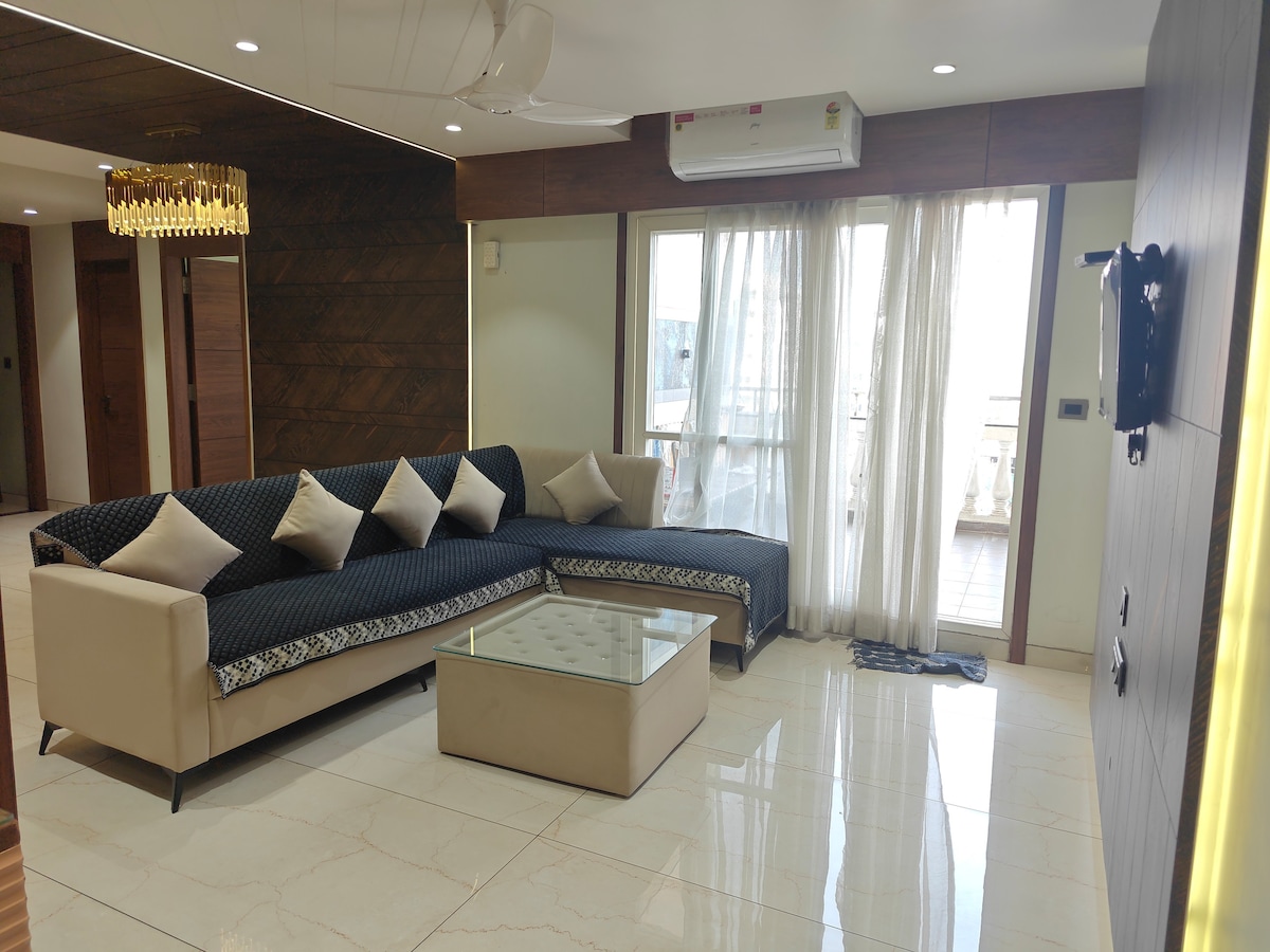 Relax and unwind in this modern, fully furnished 3BHK designed for comfort and peace. The flat features a spacious living area, cozy bedroom, AC, stylish lighting, and a balcony with open views. Ideal for business travelers, couples, and families looking for a calm yet well-connected stay. Clean, secure, and thoughtfully maintained to make you feel at home.