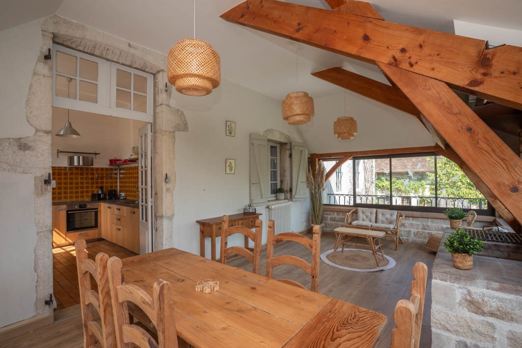 Détendez vous dans ce logement calme et élégant. La maison a été entièrement restaurée afin de vous accueillir dans un lieu plein de charme. Vous entrerez dans un charmant petit jardin clos entièrement.Vous aurez à votre disposition un bain nordique ouvert toute l’année avec poêle intégré,parfait pour vous prélasser dans une eau à 38 degrés entre amis ou en famille. Vous avez une double terrasse avec salon. Une chambre parentale avec son lit queen size et balcon .Une chambre pour les enfants