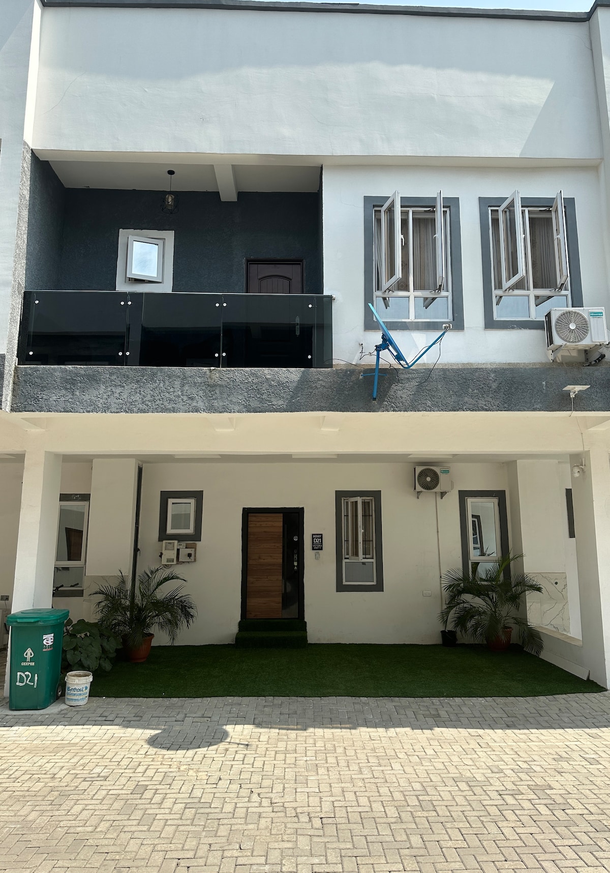 Experience a 5-star hotel feel with the comfort of home in this newly refurbished second-floor apartment. Bedroom and living room each have a TV, separated by mahogany wood profiles. Enjoy your private sitting area, AC, refrigerator, 55-inch smart TV, and a modern kitchen with a 4-burner stove. The bathroom has hot, pressurized water, electricity is 24/7, security is round-the-clock, and super-fast WiFi is ideal for working guests.”
