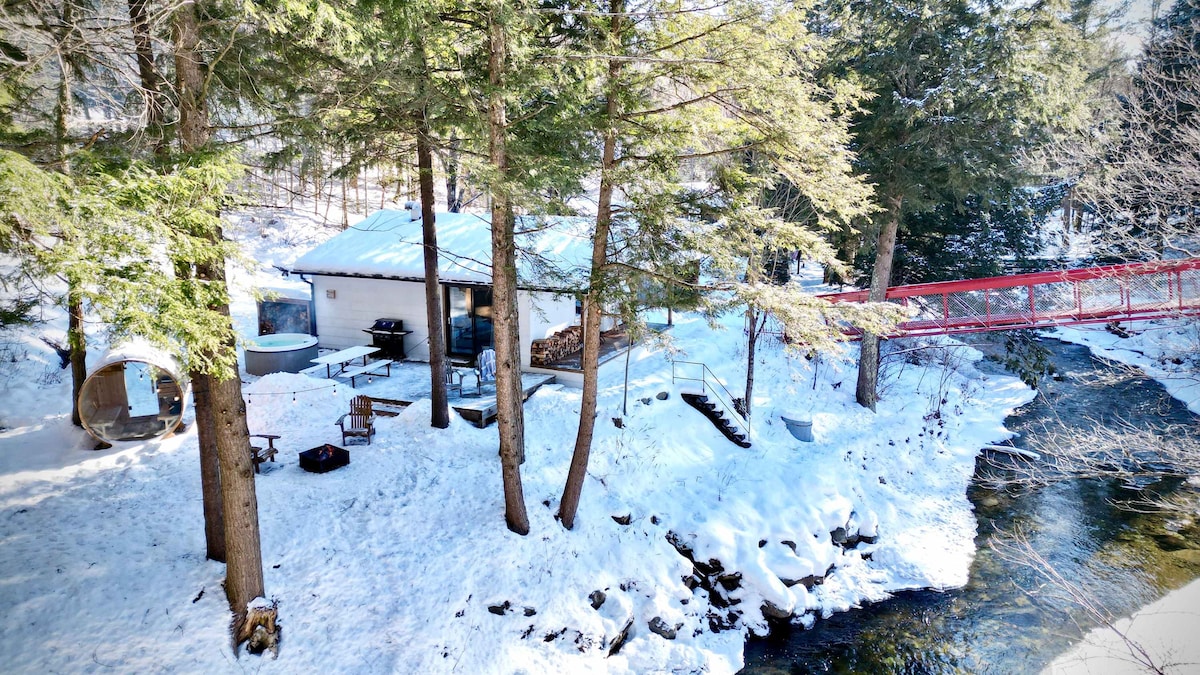 Cozy country cottage on 1 acre of land. Sits on the side of mount Orford, in the beautiful Eastern Townships. Relax and recharge with your own hot tub and sauna and/or enjoy the proximity to mount Orford ( 5 min drive ) skiing, hiking, mountain biking, and nature all at your doorstep. Within 10 minutes of downtown Magog where you will find restaurants, shops, the beach, walking path along the lake in the summer/skate around the lake in the winter. Dozens of must see attractions within 15 min
