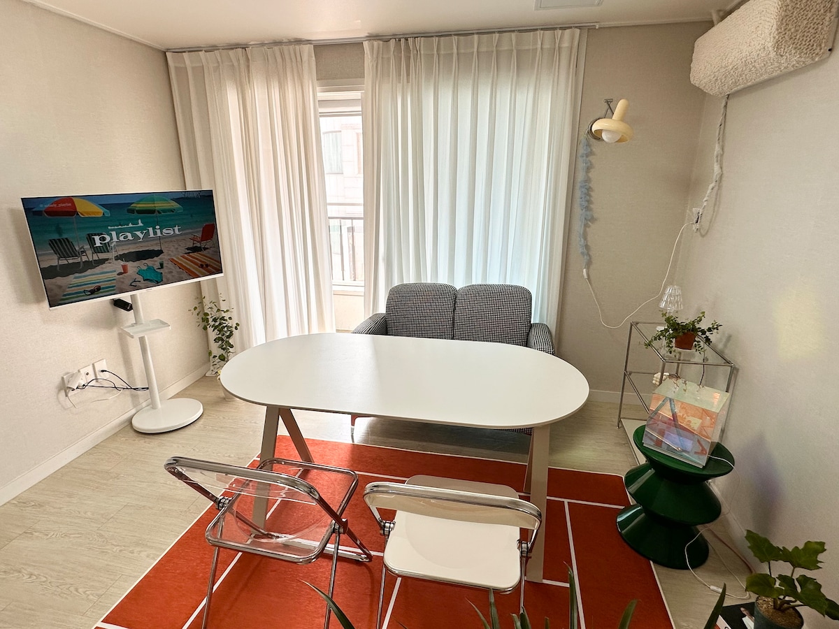 무드스테이 [스위트 온:溫]|신축 풀옵션·파노라마뷰|압도적수납·호텔침구 매회교체|넷플릭스