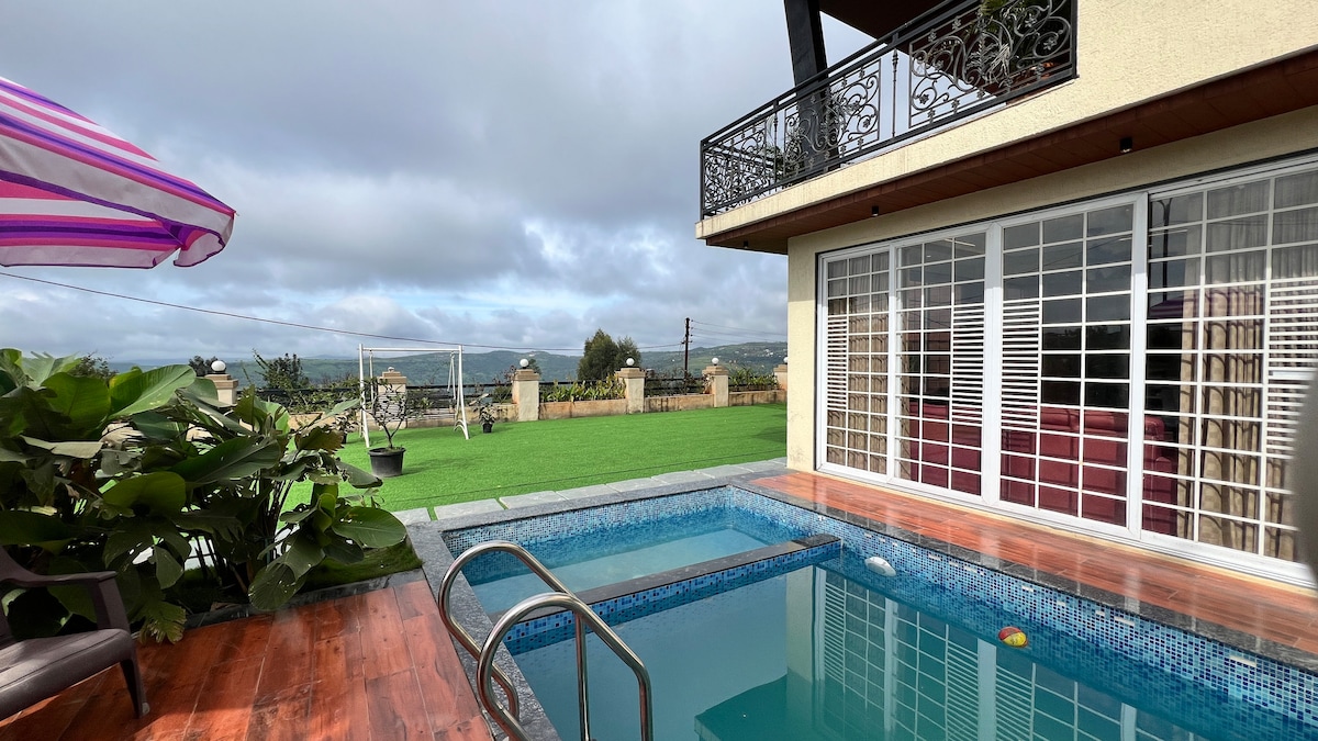 Zaid & Nida House : 3 BHK Private Swimming Pool Villa – A Perfect Fusion of Modern Luxury & Timeless Architecture Experience comfort, elegance, and nature all in one place. Nestled in the serene and secure Silver Valley CHS gated community, this stunning villa offers a unique blend of contemporary living with classical charm. Located just 4 minutes from the Panchgani main market, the villa provides convenient access to all major tourist attractions, which lie within a 4 to 20-minute radius.