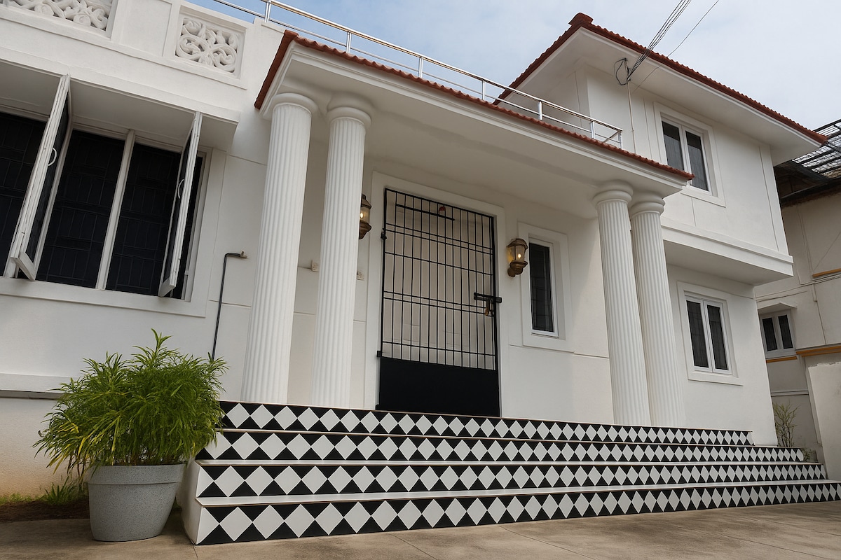 Spacious, calm villa near the beach & UNESCO monuments. Well suited for families, friends, and group stays who value space, breeze, & a relaxed atmosphere. • 4 A/C bedrooms with attached bathrooms • Extra mattresses available • Fully equipped kitchen for cooking • Tropical garden, sit-out hut & large breezy terrace • Plunge-style mini pool (for sitting & splashing) • Private parking for 5 cars, 24/7 CCTV Pet-friendly & unmarried couples welcome. Decorations on request. Food delivery available.