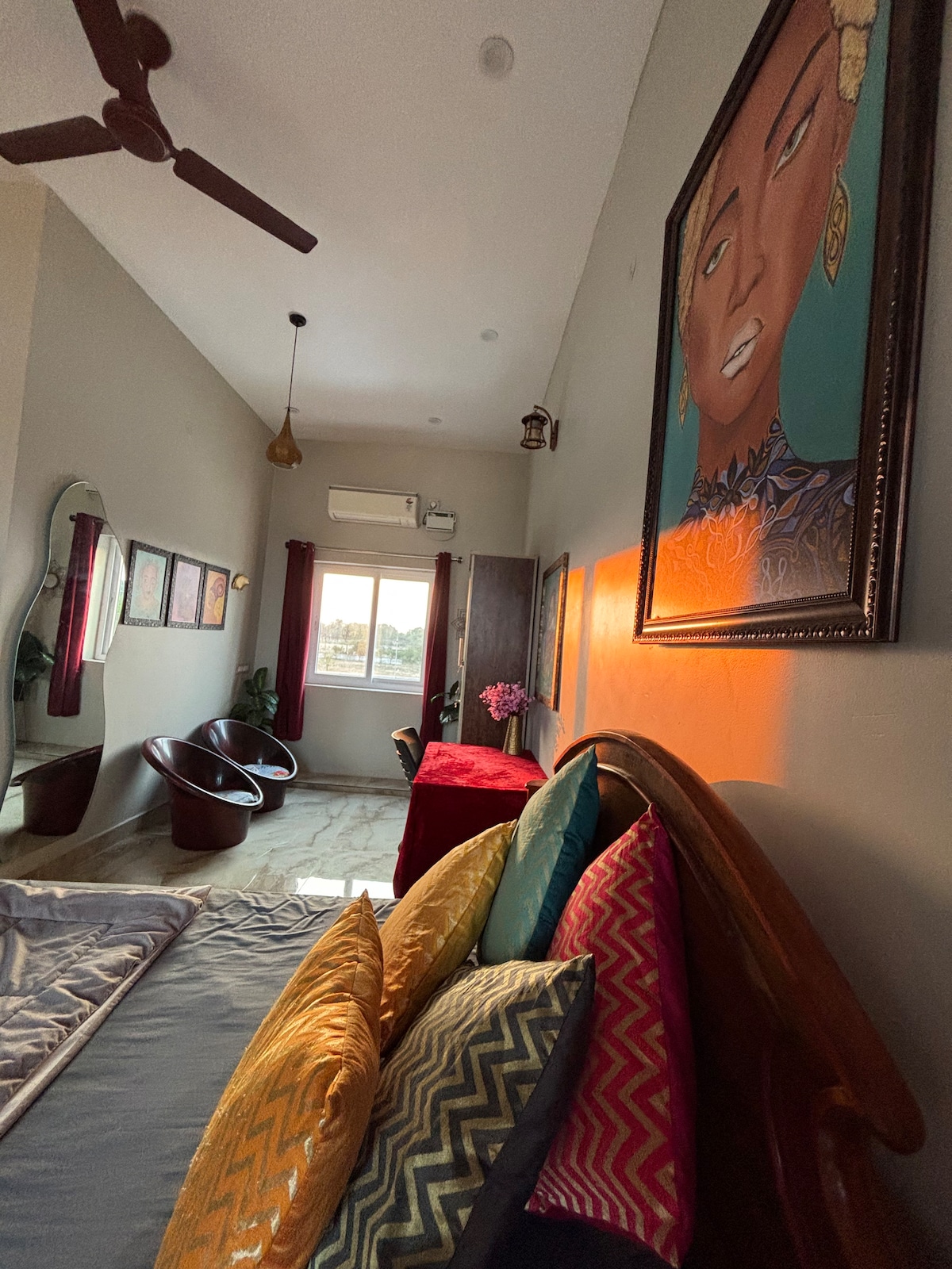 Spacious, calm villa near the beach & UNESCO monuments. Well suited for families, friends, and group stays who value space, breeze, & a relaxed atmosphere. • 4 A/C bedrooms with attached bathrooms • Extra mattresses available • Fully equipped kitchen for cooking • Tropical garden, sit-out hut & large breezy terrace • Plunge-style mini pool (for sitting & splashing) • Private parking for 5 cars, 24/7 CCTV Pet-friendly & unmarried couples welcome. Decorations on request. Food delivery available.