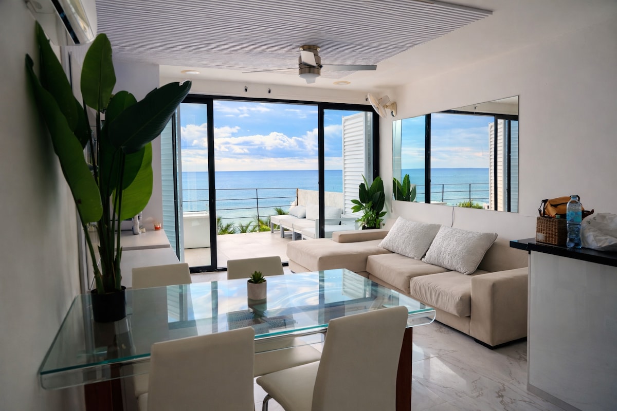 Unique Apartment with Stunning Ocean View Enjoy a one-of-a-kind stay in this modern beachfront apartment with breathtaking ocean views, this space is perfect for relaxing, working remotely, or enjoying a peaceful coastal getaway. The apartment features an open living and dining area with large sliding glass doors that open to a private balcony overlooking the sea. Book now and wake up to the sea.