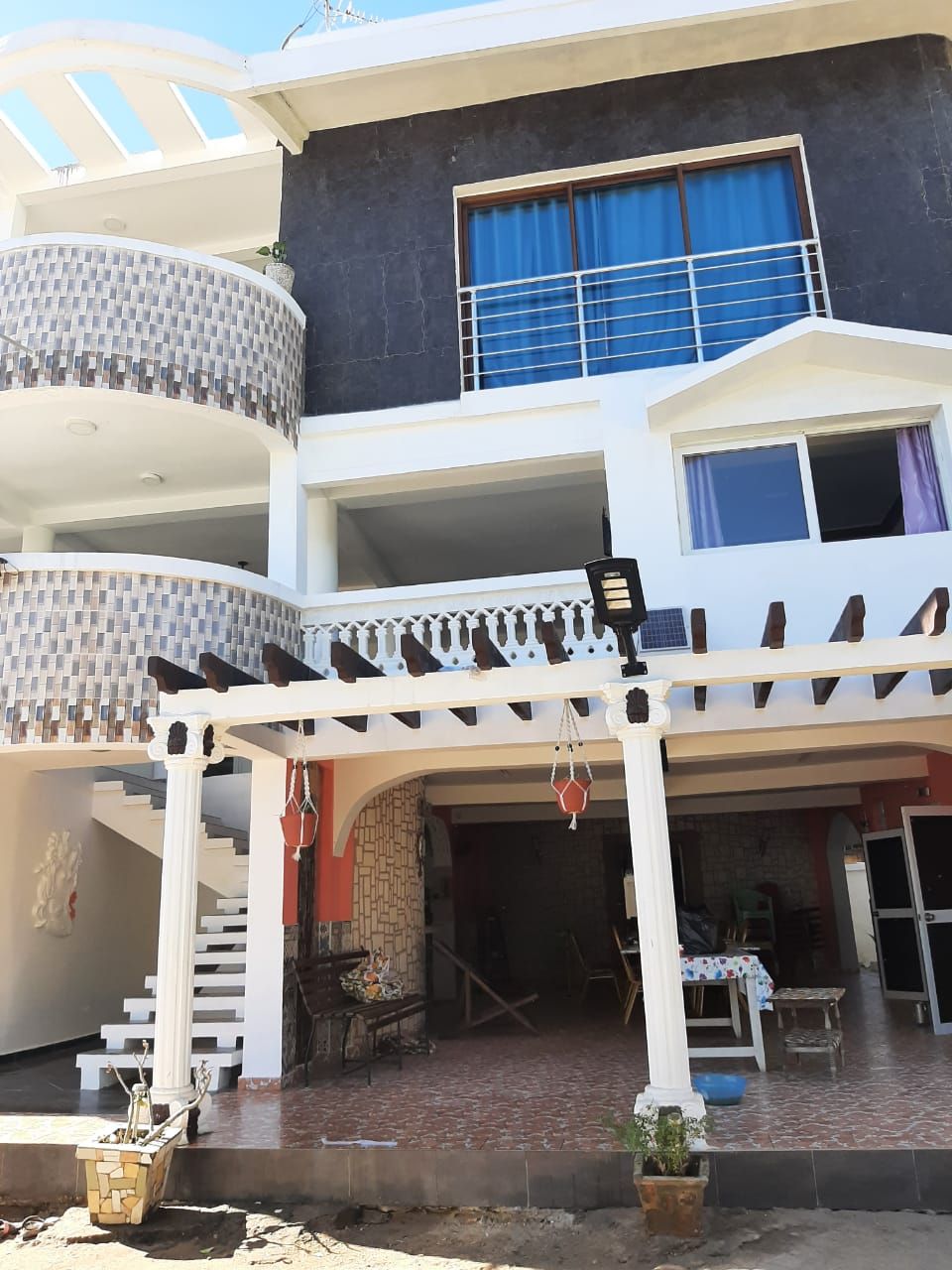 Passez de bonnes vacances en famille dans ce logement chic, bien ventilé et entouré d'arbres, situé à 200m de la plage. Le duplex est dans une villa clôturée et gardée. Il possède une cuisine équipée, 3 belles chambres, 3 salles d'eau avec WC et un bar. Sur la terrasse il y a un salon, une salle à manger et un lit d'appoint. Du rooftop vous aurez une vue panoramique d'où vous pourrez aperçevoir le phare de Katsepy (construit par Gustave Eiffel) et selon les saisons les baleines.