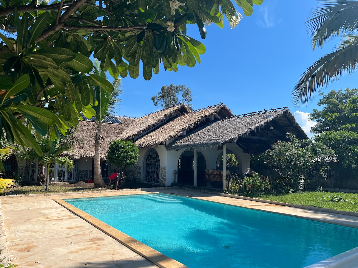 Villa basse sur la plage avec toit terrasse située sur la presqu'ile qui touche majunga. La villa est situé sur un domaine avec d'autres logements. La piscine privée est exclusivement pour votre logement, certains équipements sportifs et de détente sont partagés L'accès à la ville (en quelques minutes) se fait en traversant un bras de mangrove par barque, gratuit de jour. L'endroit est très calme et sécurisé. Détente et relaxation garantis ! wifi tres haut débit (fibre optique) et TV satellite