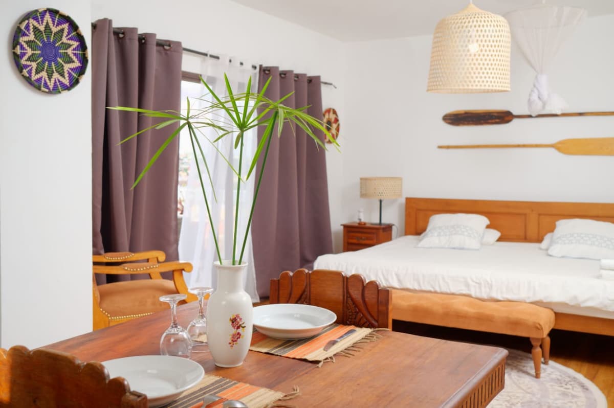 Admirez une vue panoramique sur l’est d’Antananarivo, le Rova de Manjakamiadana et le lac Mandroseza, depuis cet appartement moderne et sécurisé. Proche du centre-ville et des commodités et idéal pour un séjour paisible, il dispose d’un parking privé et d’une ambiance calme, parfaite pour les familles, couples ou voyages d’affaires. Avec plus de 5 ans d’expérience, vos hôtes sont disponibles pour rendre votre séjour inoubliable. Réservez maintenant et découvrez le meilleur de la capitale !