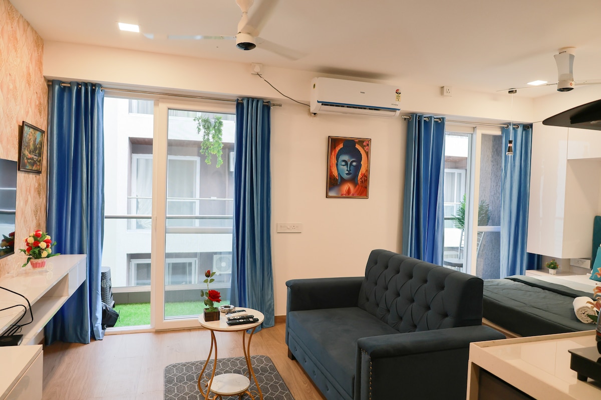 Welcome to Pune Airport's Finest Lounge Studio, a thoughtfully designed studio apartment in Viman Nagar, just minutes from Pune Airport. Get a peaceful nap with a cozy king size bed, luxe interiors. Thoroughly cleaned and a peaceful space. Unwind with coffee breaks in the ambient lighting, and a peaceful vibe that makes every layover or stay feel effortless. Perfect for business travelers, couples, or anyone who loves a stylish pause before takeoff.