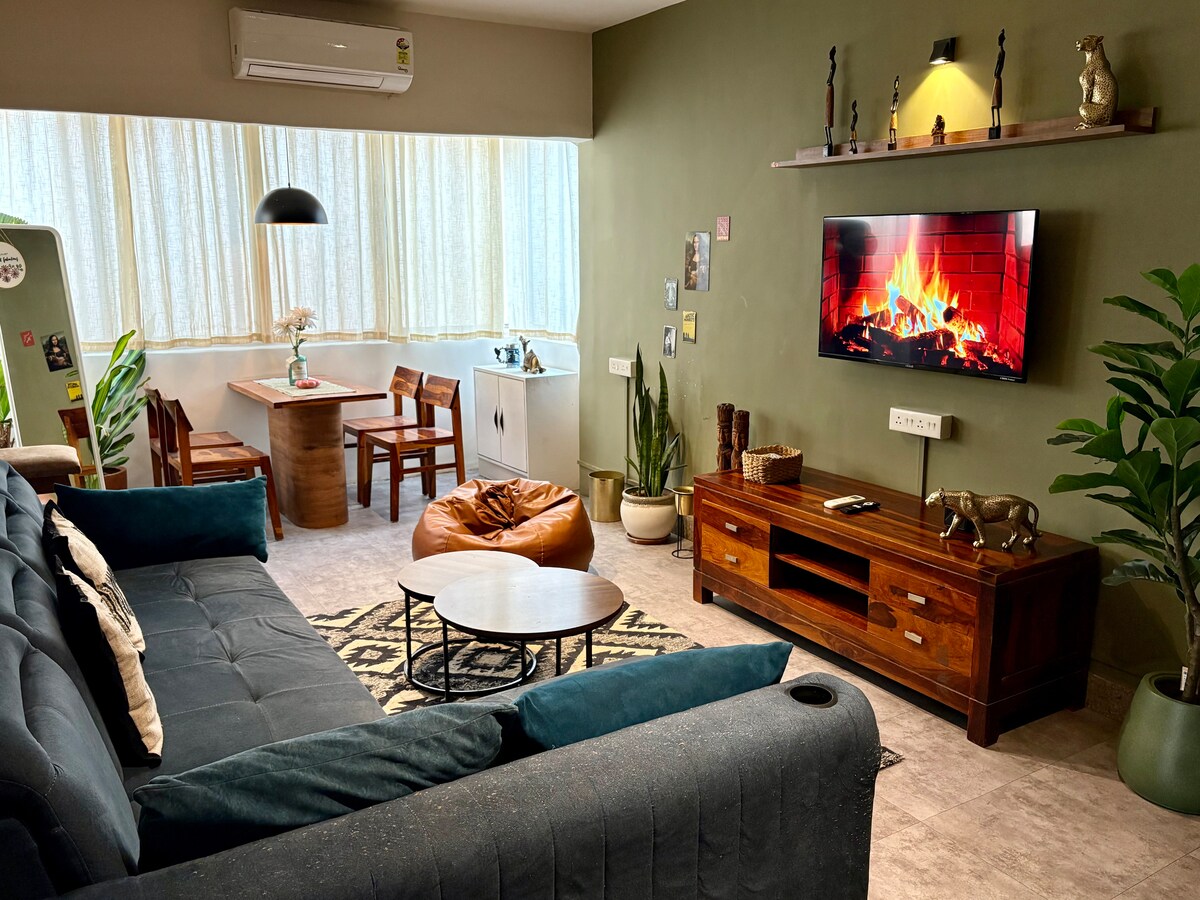 A boho Chic ground floor tastefully curated 2BK retreat in upscale SantaCruz West. We are steps away from FOOD SQUARE, Linking Rd, 10 mins from Santacruz station & close to chic cafés & boutiques. Only 15 mins to the airport & BKC. Ideal for families, couples, or business travelers seeking comfort, style & prime location. Whether you're in town for a work trip, a shopping spree, or just a quiet getaway, this flat offers the comfort of home and the location you need. We can’t wait to host you!