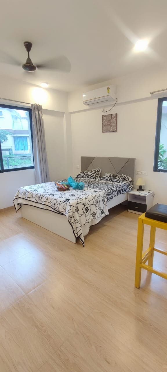 Wake up to rhapsody of chirping birds, gentle sea breeze & magnificent sunrise surrounded by lush greenery. Silver BEACH -5 min Walk Aksa BEACH-15 min drive Smart TVs , AC, Wi-Fi ,a Bath tub. Spend cozy afternoons in the balcony with a book and a cup of coffee ,amidst greenery . Stroll on the beach , Explore beautiful landscaped gardens , Pool & Quaint cafe of the luxury apartment complex , Set in peaceful & tropical neighbourhood of Madh Island Zomato Swiggy & Blinkit delivers