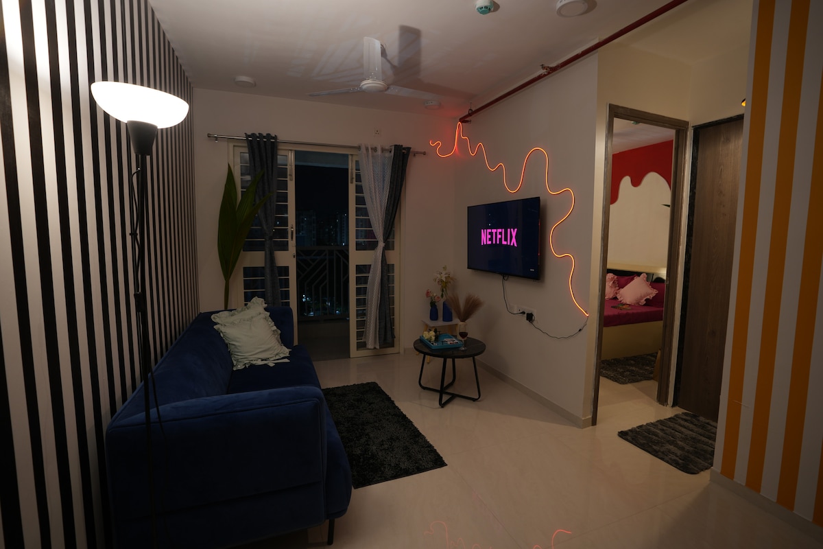 Welcome to The Vibe Den – a unique, stylish apartment in Pune, personally designed and curated with love. Every corner is Insta-worthy, blending comfort with modern aesthetics. Perfect for weekend getaways, work-from-anywhere trips, or a cozy city retreat. Enjoy chic interiors, warm vibes, and thoughtful touches that make your stay memorable. Step in, relax, and let the vibes take over.