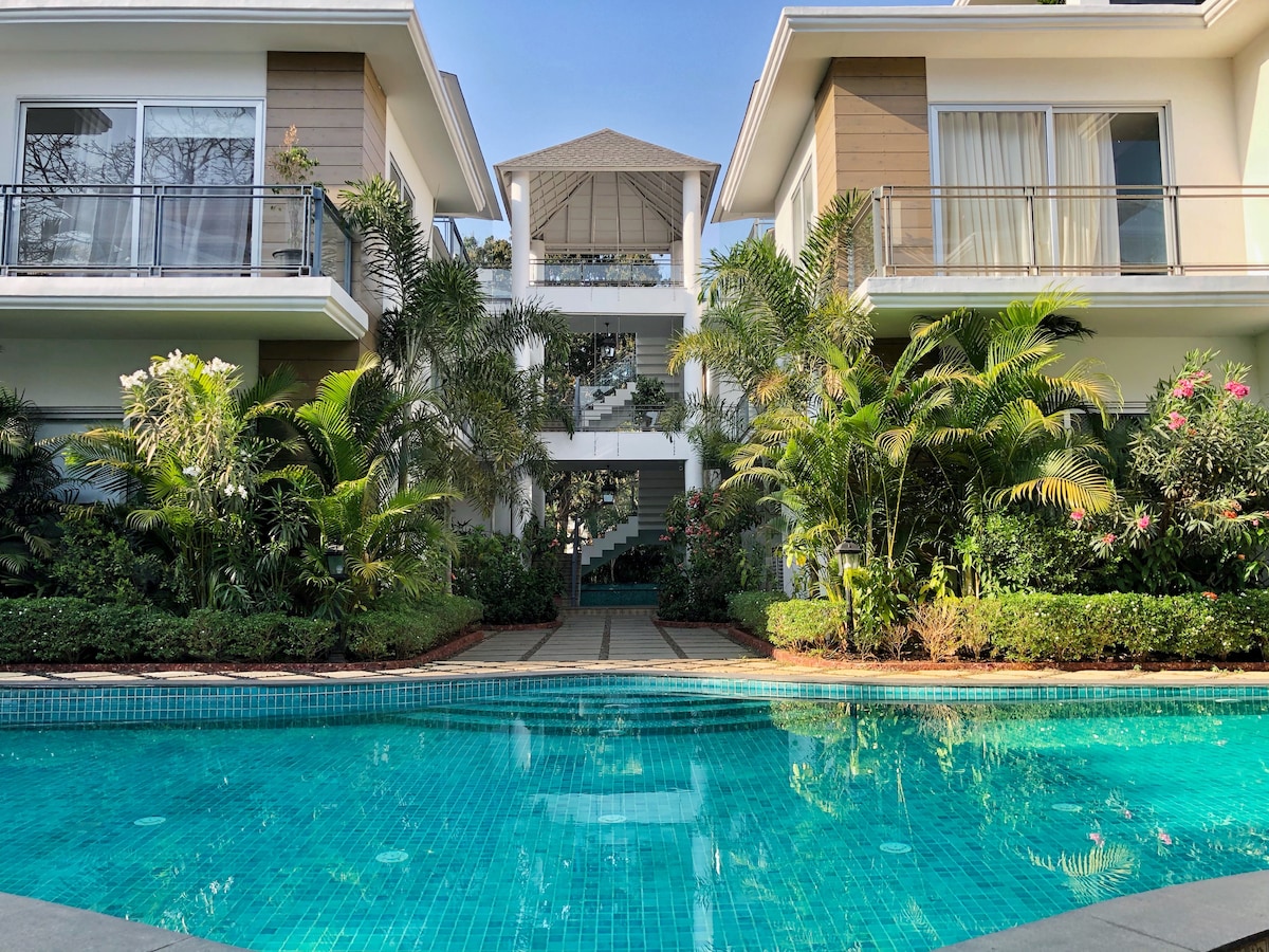This serene, inviting space embodies the essence of the Ocean, Sky & Earth. Flooded with natural light, it features spacious bedrooms, gleaming bathrooms, a fully-equipped kitchen & a private garden with Gardenia, Jasmine, Banana & Frangipani trees. Located in a gated community with a swimming pool, housekeeping, 24/7 security, free parking & a cook-on-call. Enjoy deliveries from Goa’s finest restaurants & easy access to Ashwem, Mandrem, Morjim, Anjuna & Vagator beaches - just 10-15 mins away!