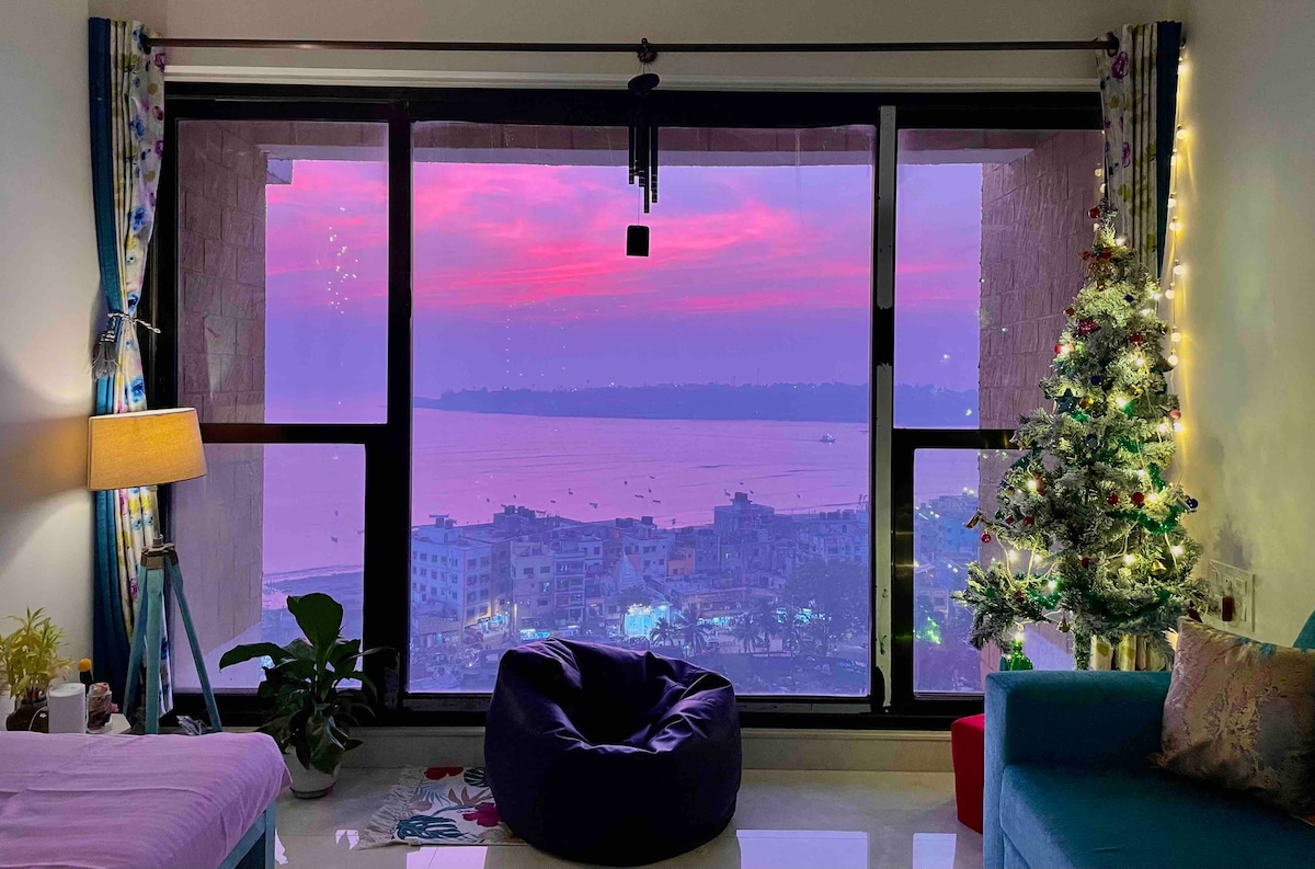 Welcome to our exclusive South Mumbai Airbnb retreat, nestled in a posh neighborhood. Immerse yourself in luxury in this charming bungalow, a gem capturing the essence of Bombay living. The private room is a haven of sophistication, equipped with a kitchen. Step outside to an enchanting outdoor seating area surrounded by a lush garden with a breathtaking sea view. The prime location offers a rare opportunity to relish the Arabian Sea's beauty from your accommodation.