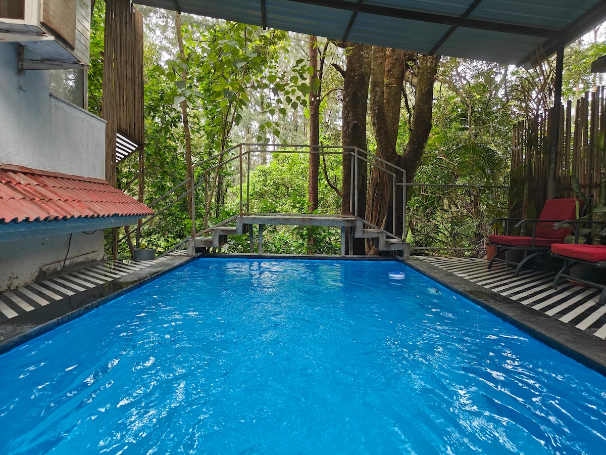 'Villa Elsewhere' is a luxurious, beautiful, private pool villa, just 60-90 mins drive from Mumbai. Surrounded by lush green views of fields, hills, and sounds of nature. The Villa has 3 AC en-suite bedrooms, a large AC living room that opens into a private pool and large deck with a Bar. The kitchen is fully equipped where a chef can make delicious meals (*extra charge). It is pet friendly (*extra fee). BOOK to relax in a calm peaceful vibe, for a get together, or to host the best part ever!