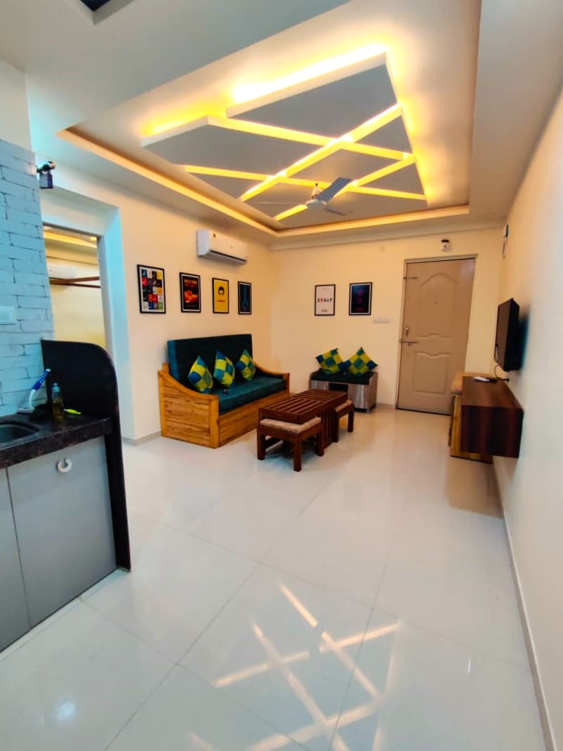 WiFi Enabled Bedroom-Hall-Kitchen all Furnished with AC in all rooms & a Breathking View, we guarantee peaceful holiday at our heavenly Adobe. Serendipity, Solace, Surprise is what our home would leave you with Love and lot of care with which we have designed our place will leave you spellbound Apartment is designed for a comfortable stay & comes with 2 televisions a 55 inch in the living & a 43 inch at Bedroom. Moreover we have a Private Jacuzzi in the shower area.
