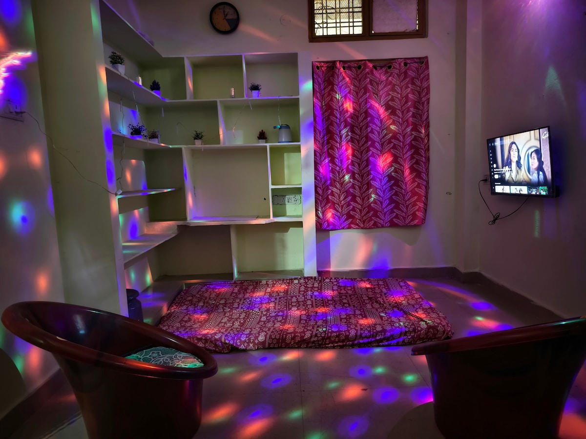 ✨ Modern 1BHK Retreat – Perfect for Couples & Solo Travelers ✨ Welcome to our thoughtfully designed 1BHK is ideal for travelers seeking comfort, style, and convenience. Hall with smart TV resting chairs and table for dining or work with internet. Kitchen with induction, utensils and water filter for perfect snacks or meal. Wash room has western tiolet and shower with hotwater. Prime area with easy access restaurants and local attractions. Rides and groceries delivery are minutes away.