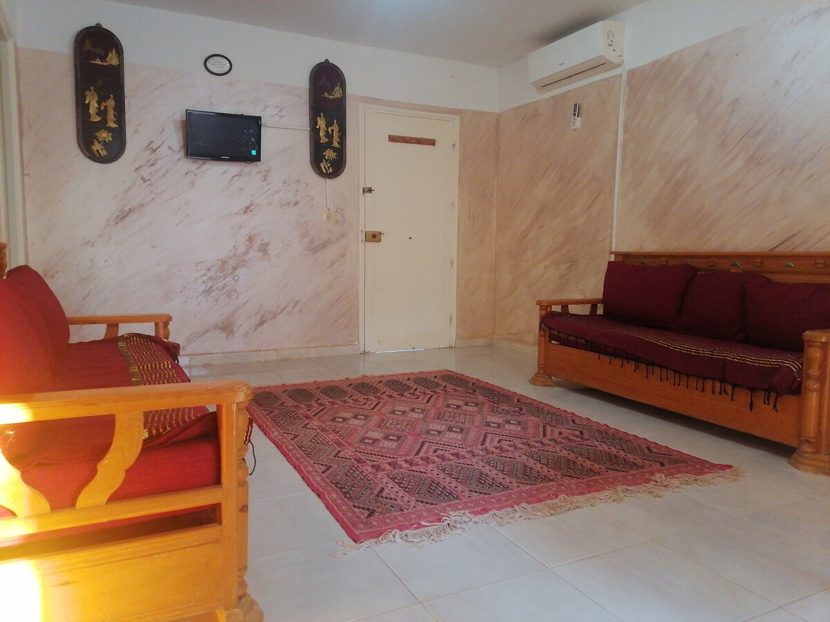 séjour de rêve dans un logement spacieux et climatisé ( en cas de besoin suite à une chaleur excessive à l exterieur), à 100 mètres de la plage naturelle de la CHEBBA avec vue sur mer de deux cotés , résidence calme située à proximité du monument historique Borj Khadija, plusieurs lieux de restauration de shopping