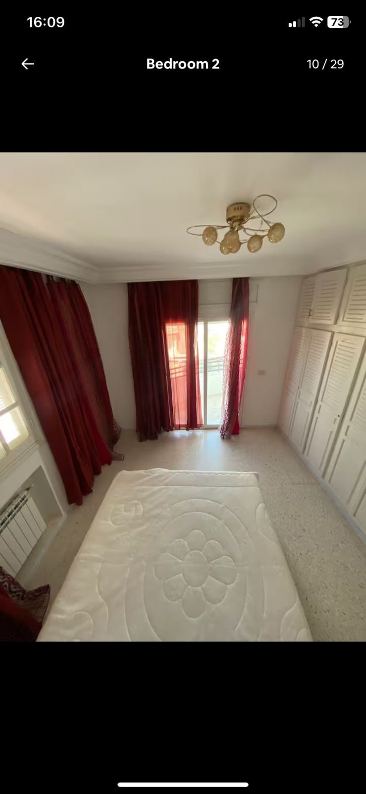 Le seul immeuble pied dans l’eau à Mahdia! ☀️ Résidence sable d’or collé à l’hotel Royal mansour. Appartement spacieux situé au 1er étage avec ascenseur, composé de 2 chambres et d’un salon ouvert sur la cuisine et la salle à manger. Le salon offre une vue mer et donne accès à un balcon avec vue sur la mer. La suite parentale bénéficie également d’une vue mer, apportant luminosité et confort. Un logement agréable et fonctionnel, idéal pour un séjour au bord de la mer.