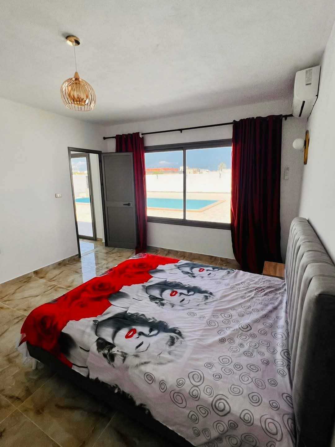 Maison située au rez de chaussée d’un immeuble habité par moi et ma femme au premier étage et sécurisé par un gardien de l’autre côté . La maison possède tout les moyens de confort toutes les chambres sont climatisées bien équipées. La piscine est réservée que pour les locataires de cette maison . Nous garantissant le calme ,la tranquillité et la sécurité. La plage est à 10 min à pieds .