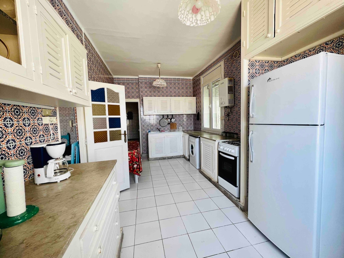 Benefiting from a good neighborhood, this villa floor is located in a quiet residential area a few meters away from the beach (150 m). You can enjoy the summer atmosphere by swimming in one of the most beautiful beaches of Mahdia, which is 2 min away walking, or by visiting restaurants and hotels nearby, across the corniche.