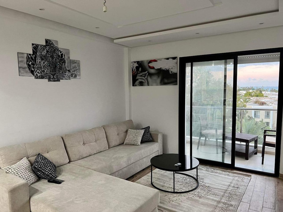 Escape to our Sea View 1-Bedroom Apartment in Mahdia. Wake up to breathtaking ocean vistas, savor the coastal breeze from your private balcony, and experience tranquility in a well-appointed space. This modern retreat offers a comfortable bedroom, a fully equipped kitchen, and access to nearby beaches and cultural sites. Immerse yourself in coastal living and create unforgettable memories by the sea.