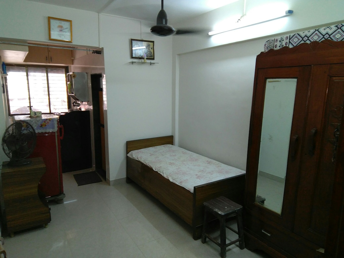 Welcome to our fully furnished home in Dadar West! Perfectly located in the heart of the city, everything u need is within 1 km radius metro & railway stations, hinduja hospital, popular malls,colleges , cinemas, theaters, gyms, sea face , cafes, restaurants, the famous Shivaji Park, and Siddhivinayak. House features 2 sofa-cum-beds accommodating 4 guests, air conditioning, a refrigerator, geyser and fully equipped kitchen with utensils All commute options. A cozy, convenient stay awaits you!.