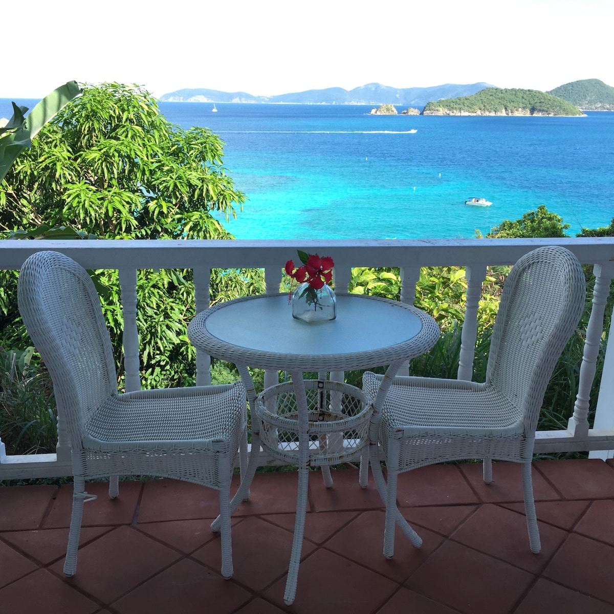 Lovely Cottage with 180 degrees of white water views. You can see and hear the crashing waves below. A/C, Private , Romantic with a gorgeous outdoor shower. Spoon into a nest of intimacy. Immerse yourself in island breezes. Take in the views of the rising sun and moon as they glisten across the crystalline waters of Hurricane Hole. Settle into the rhythm of Island life with solar energy and purified rainwater, resourceful recommendations, advice and insider tips. Welcome to simple elegance.