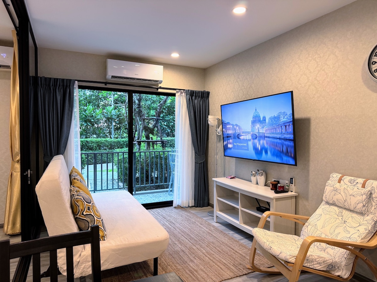 Step straight into the garden from our cozy and stylish apartment at The Title Naiyang. It’s a peaceful spot just a few minutes’ walk to the beach, restaurants, and cafes. We’ve made sure everything’s ready for a comfortable stay — from a fully equipped kitchen to a comfy bed and a quiet private terrace. Perfect for unwinding after a day by the sea or by the pool. We love it here and hope you will too!Relax with the whole family at this peaceful place to stay.
