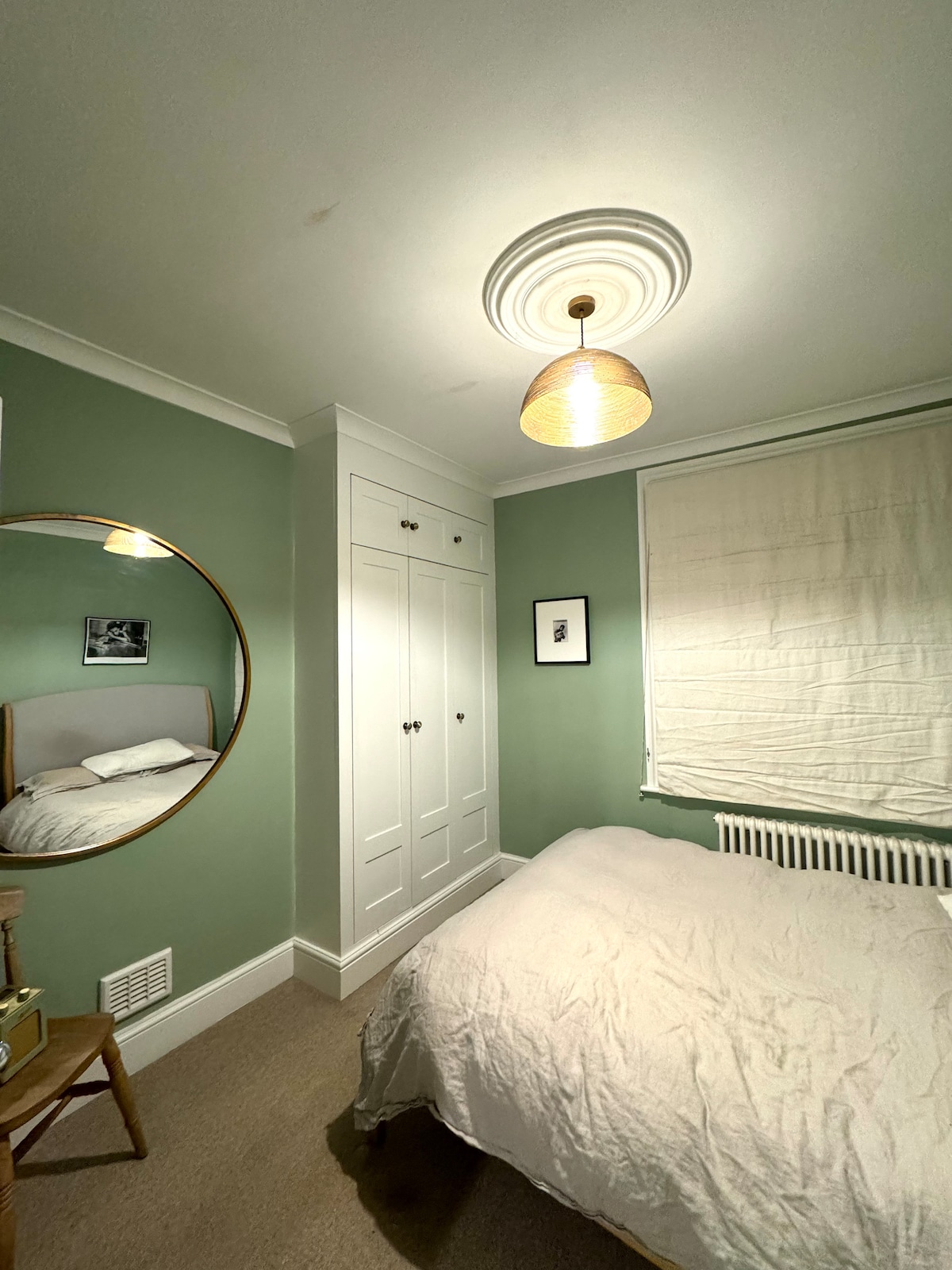 Stunning 80sqm Studio in Queen's Pk, a charming neighbourhood. 1 nt stay surcharge - £20 Max 4 persons Use of extra folding bed - £25/nt/person Travel cot avail on request - pls bring own cot linen. Beds: Vi Spring double mattress (1.35x1.9m). Folding small double bed (1.2x1.9m) Dedicated workspace with superfast fibre WiFi Located in basement of large Victorian terrace, technically a 'private room' but functions independently like a private/ entire place'. Host lives in house above.