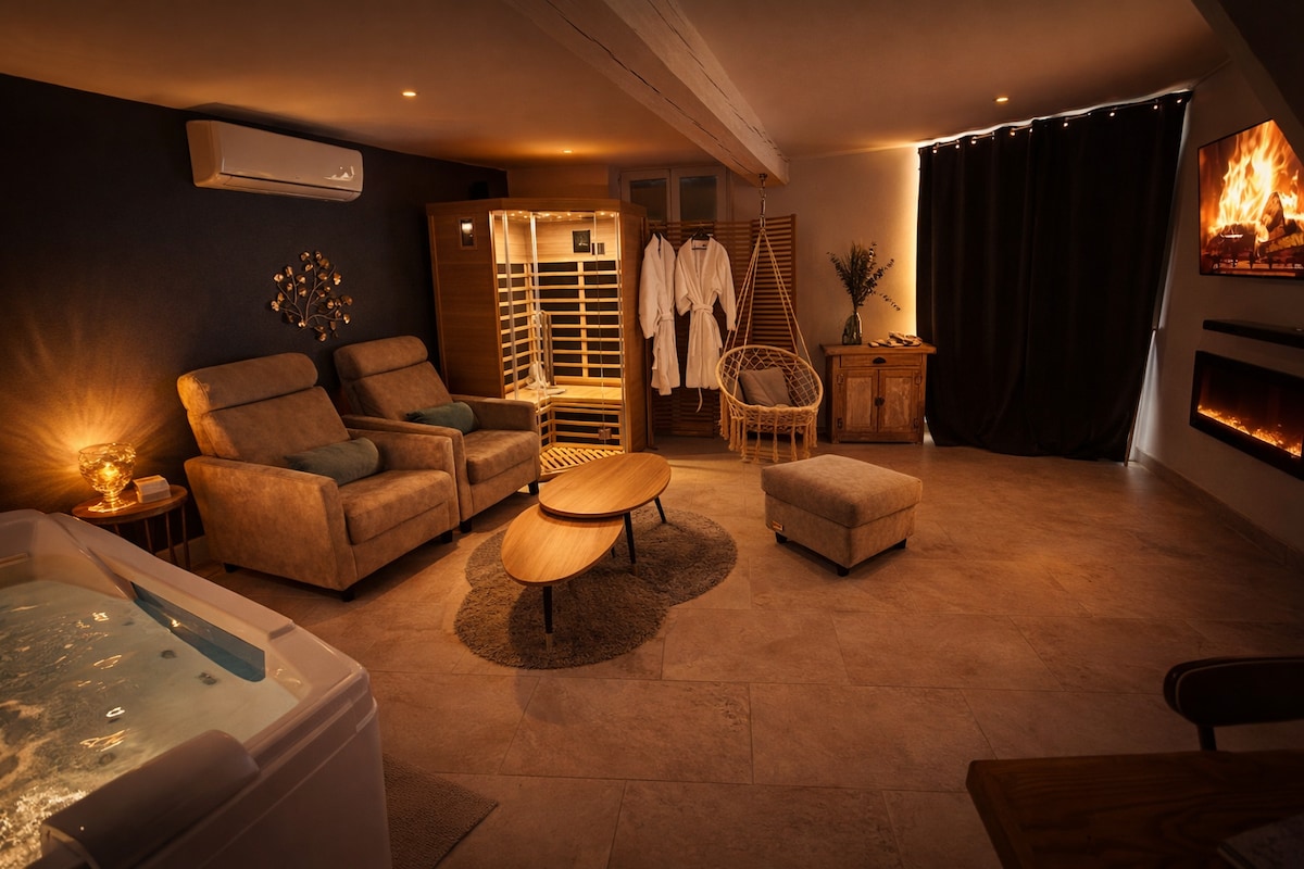 Vivez une expérience unique en famille ou entre amis en logeant dans un ancien héliport privé, réhabilité en chalet de charme au cœur d'un parc privé de 2 hectares🌲🍀 Et si votre terrasse était une piste d’atterrissage❓🚁 Fun et détente assurés grâce à nos nombreux équipements : - Piscine couverte 🏊♂️ - Jacuzzi 🛁 - Salle d’arcade 🎰 - Salle de sport 🏋️♂️ - Pétanque 🥇 - Aire de jeux 🤼♀️ 🏸⚽️🏐 - Mini ferme avec ânes, cochons, moutons, poules, chien, chats 🐶🐷🐴🦮🐈