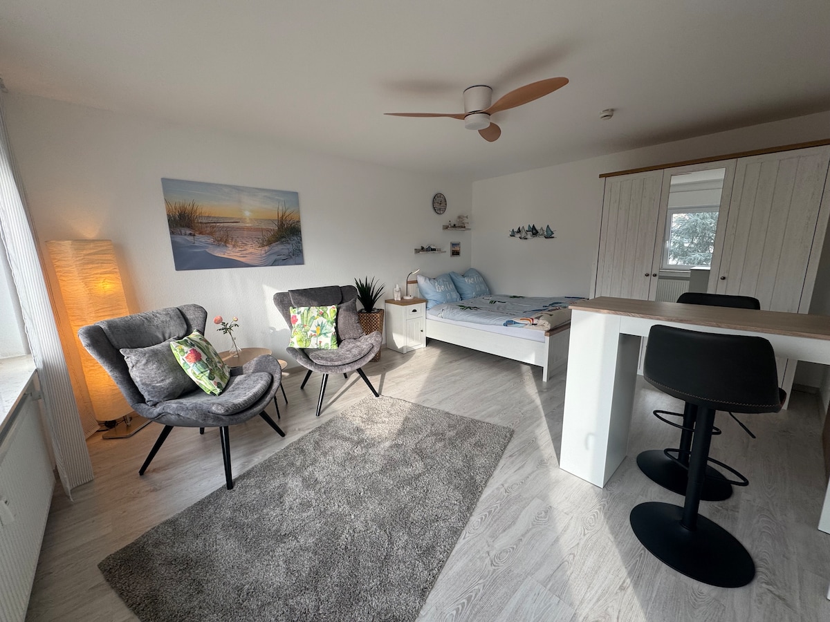 A cozy 21 m² apartment — smart, organized and ideal for work or short stays. The 140x200 cm bed has a brand-new mattress. Great workspace with desk, TV - fast and stabile Wi-Fi. Shower and toilet are separated, which saves time in the mornings. The kitchen is small but clever, with a door to keep sleep and cooking apart. Underfloor heating, blinds, lots of light. Direct access to B469: Frankfurt Airport ~30 min, Aschaffenburg 12 km. A calm place to recharge and feel at home during your projects.