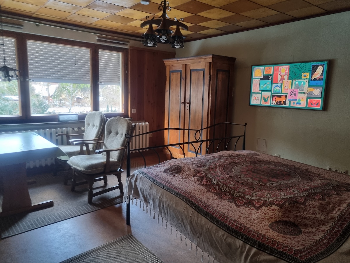 Kleines Studio mitten in der Natur mit ca 35 m2. Im Studio findet man alles was man braucht; ein großes bequemes Doppelbett, eine komplett eingerichtete Küche mit Spülmaschine, Kühlschrank etc, ein Bad mit Badewanne und Duschkabine, einen Esstisch sowie eine kleine Sitzgruppe. Ein toller Fernblick aus dem Fenster im Schlafzimmer. Ein überdachter Freisitz im Garten kann mit genutzt werden. 1,5 km entfernt liegt Schöllkrippen mit allen Einkaufsmöglichkeiten.