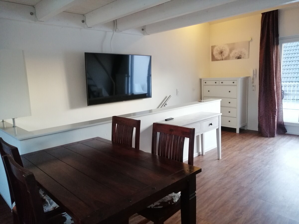 Das Zimmer mit integrierter Küchenecke und separatem Duschbad/Toilette hat einen eigenen Eingang und ist barrierefrei zu erreichen. Es befindet sich in einem Zweifamilienhaus. Die Küche ist mit einer Basic-Kocheinrichtung und Kühlschrank ausgestattet. Schrank, Kommode, ein Tisch und zwei Stühle, ein Doppelbett. W-LAN ist vorhanden.