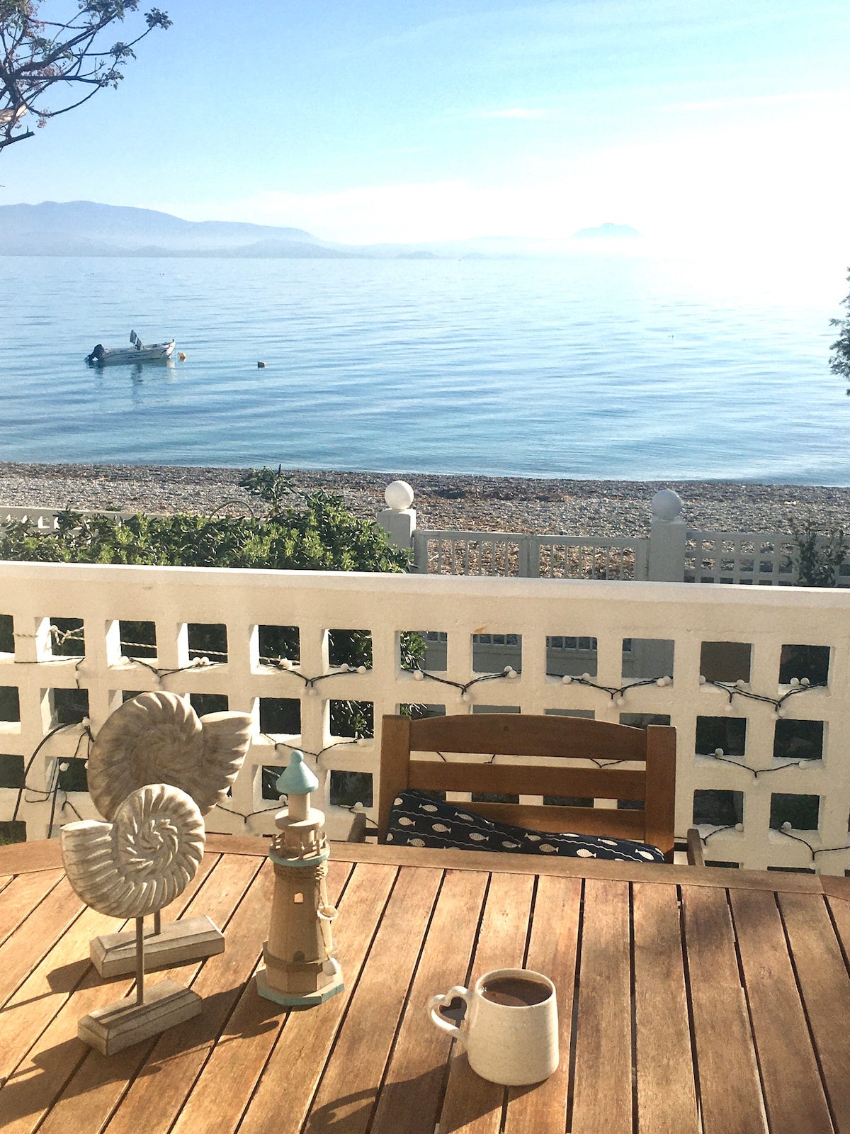 A beautiful spacious beachfront house situated just on the beach of the Corinthian Gulf in the Peloponnese, ideal for both families and couples wishing for a villa by the sea close to the most important archaeological attractions of the Peloponnese and near to the capital of Athens as well !Wireless Wi-fi all year long , brand new air-conditioning in every bedroom and closed garage among the many facilities this beachfront house is offering to guests