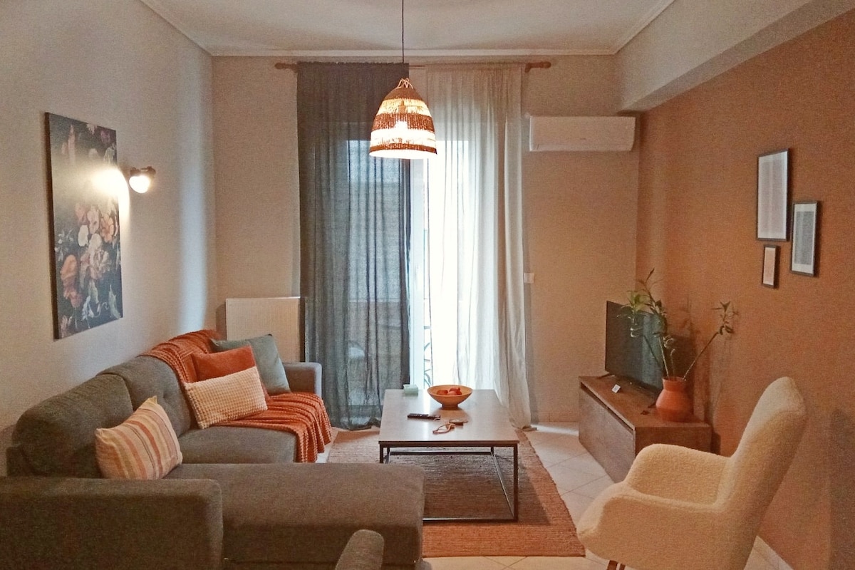 Ζεστό, όμορφο διαμέρισμα 40 m2 στο κέντρο της πόλης. Απέχει μόλις 2' από την Πλατεία Αγίου Βασιλείου, την Πλατεία του Άρεως & τους κεντρικούς πεζόδρομους της πόλης. Διαθέτει ένα υπνοδωμάτιο με διπλό κρεβατι, καθιστικό με καναπέ- κρεβάτι & μπάνιο. Μπορεί να φιλοξενήσει μέχρι 3 άτομα. // Cozy, beautiful apartment 40 m2 in the city center. It includes a bedroom with a double bed, a living room with a sofa bed & a bathroom. It can accommodate up to 3 people.
