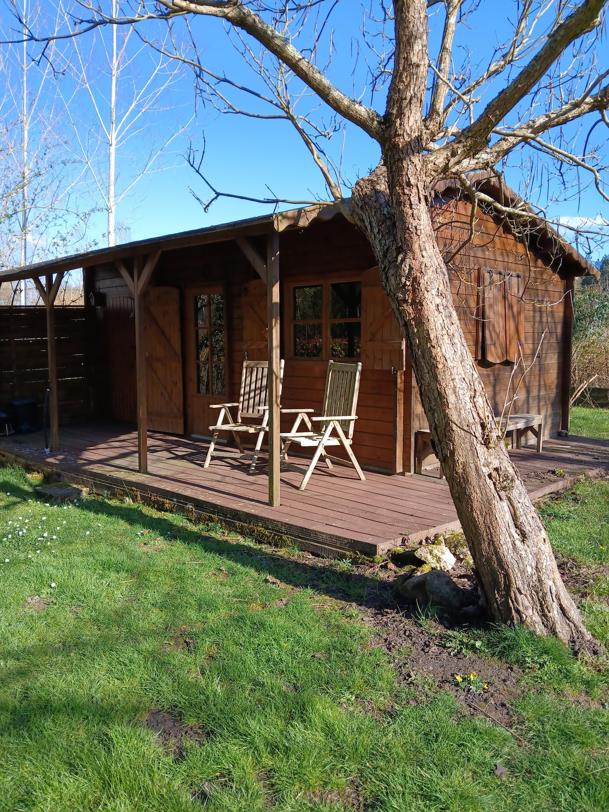 Je vous accueille, sur mon terrain en bord de rivière. La cabane est située a Beaupreau est dans un coin de Nature Notre "hoby" vous offre l’opportunité de vivre simplement au rythme de la nature. La location est en gestion libre, JE NE FOURNIS PAS LES DRAPS ET LES SERVIETTES. En commun avec une autre cabane Toilette sèche et douche d'un chalet avec une kitchenette en bois sont à votre disposition à l’extérieur du logement. Jacuzzi en supplément me faire la demande