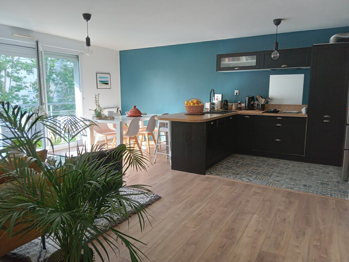 Bienvenue dans notre grand et superbe appartement, T2 avec parking privé, pouvant accueillir jusqu'à 4 voyageurs, situé derrière le palais de justice, vous pourrez rejoindre l'hyper centre en quelques minutes à pied ou en transports. Nos tarifs sont tout compris ( draps et serviettes, wifi, ménage, parking) et nous serons vos interlocuteurs (pas de messagerie robotisée) 🔑 Remise des clés de 13h à 20h/départ 11h maxi (départs tardifs possibles le dimanche avec supplément) ⚠️ Fêtes INTERDITES