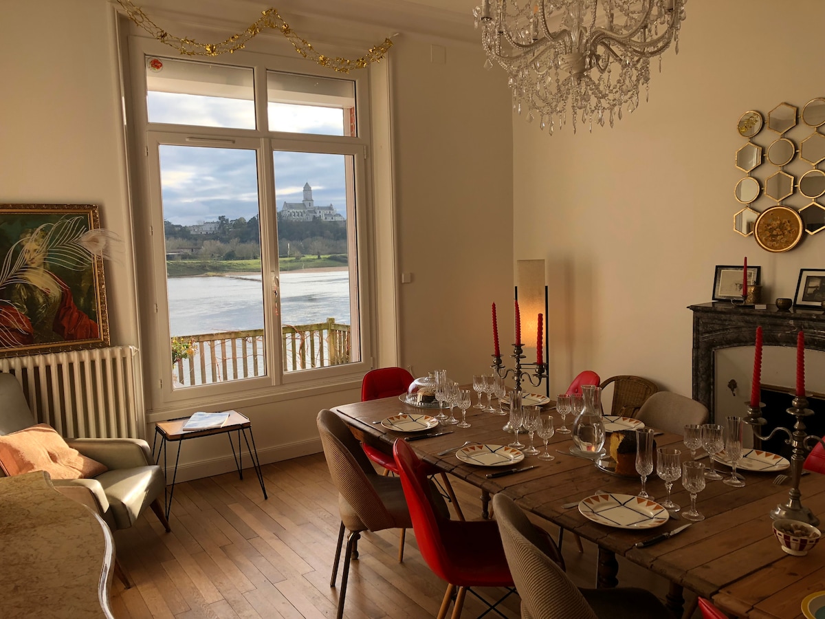 Charming Villa, tastefully renovated, a spacious kitchen, a large luminous stay open on a living room the whole with beautiful height under ceiling, woodwork, parquet... Upstairs 4 large rooms including 2 with balcony and one with bathtub on feet as well as a bathroom and a dormitory for 6 persons. The lodging can accommodate up to 12 people. The exceptional view of the terrace on the Benedictine abbey erected on the Montglonne overlooking the Loire of its fifty meters will enchant you...