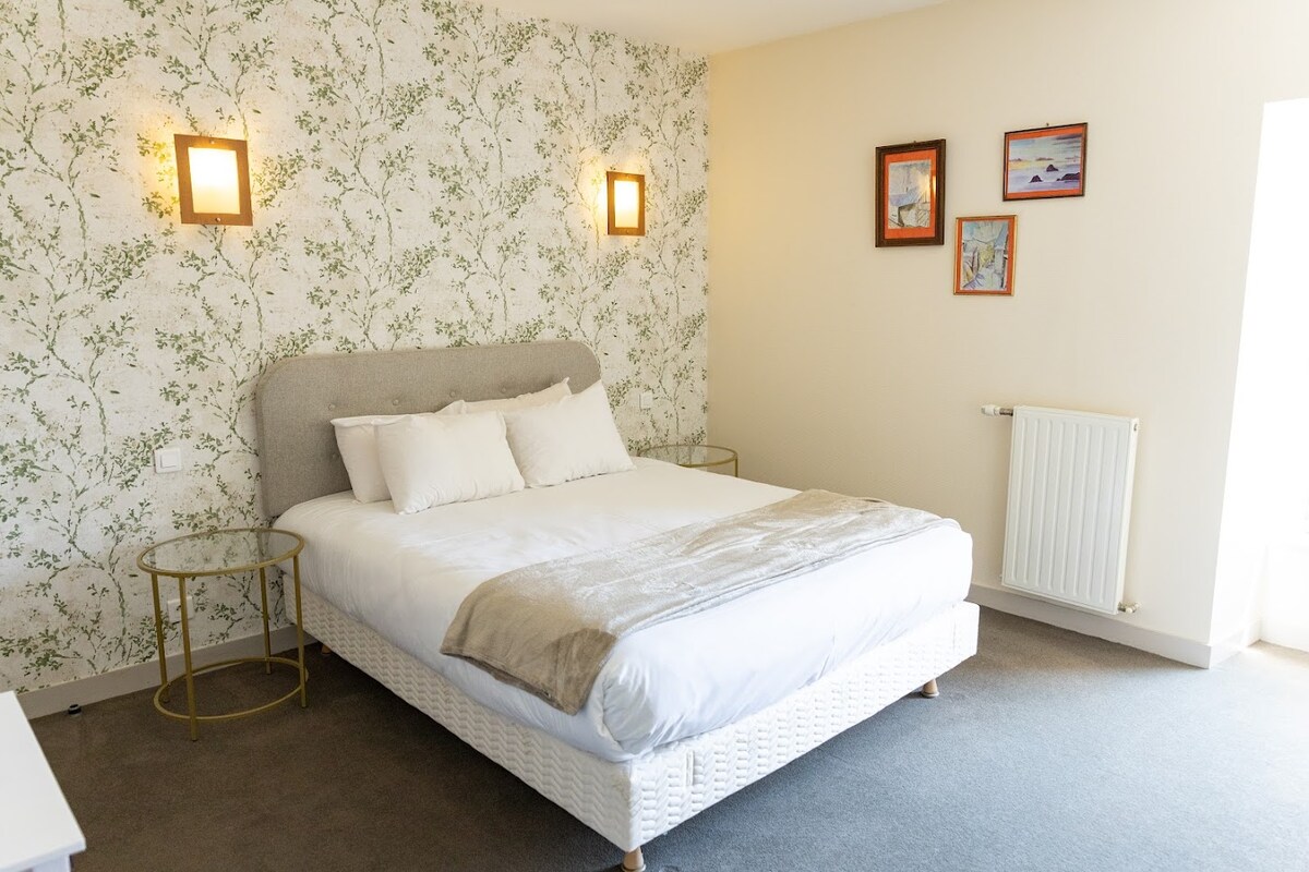 Le logement : Bienvenue dans notre chambre la plus authentique. Avec ses murs en pierres de tuffeau apparentes, elle offre une ambiance chaleureuse et typique de la Touraine. Située dans une ancienne bâtisse réhabilitée, elle allie le confort moderne au cachet de l'ancien. Les points forts : Entrée indépendante en rez de jardin, grand lit confortable, et calme absolu pour une nuit réparatrice après avoir exploré les caves de Bourgueil.