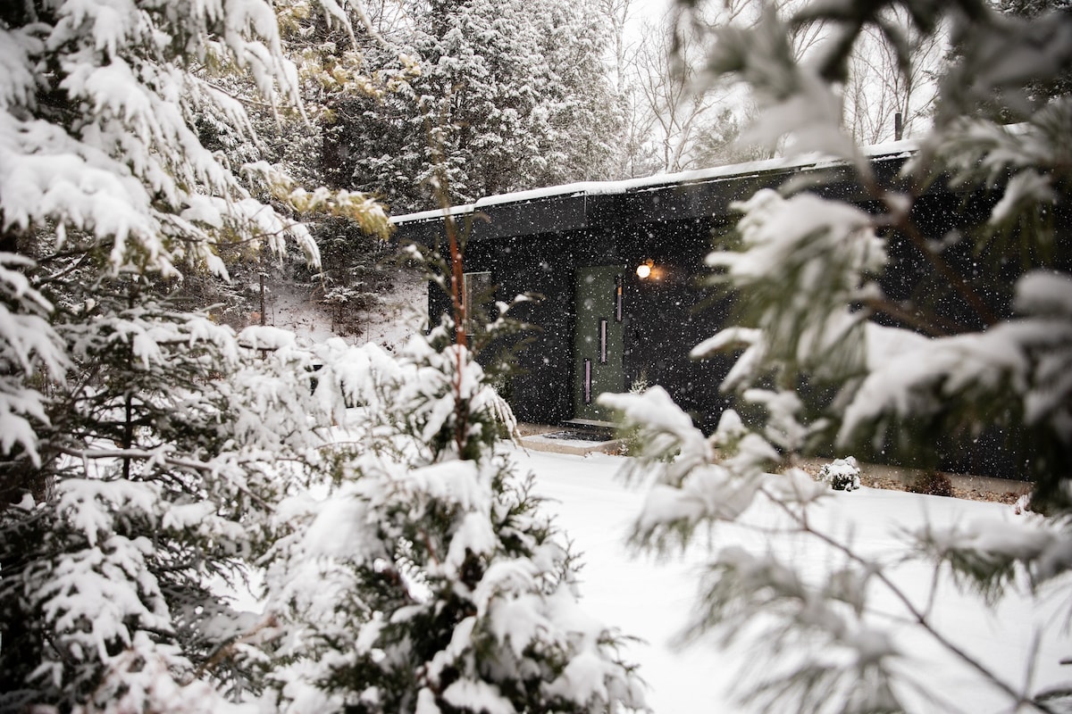 远离尘嚣的度假胜地。木柴热水浴缸、雪鞋
