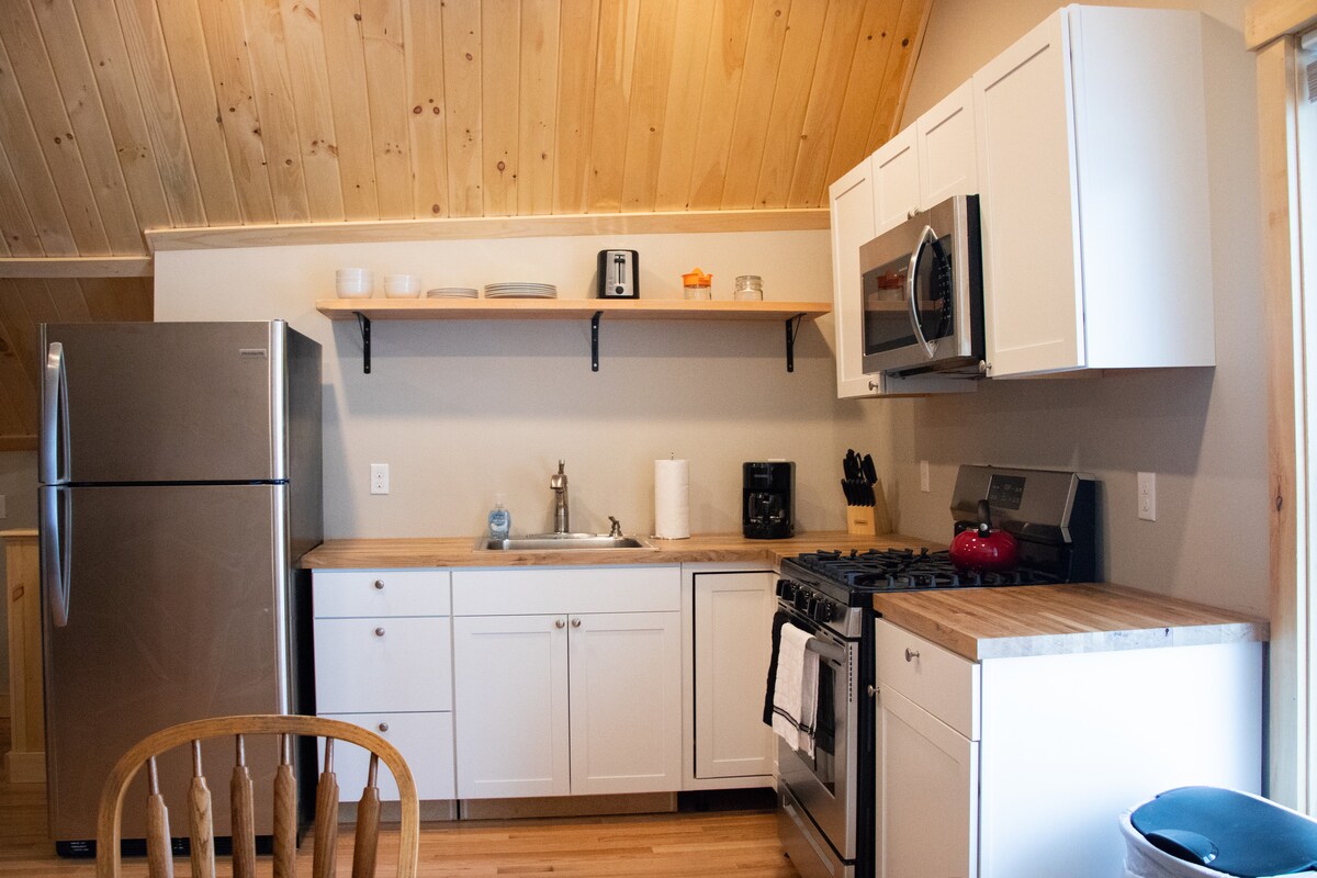 Stay just 8 minutes from Sunday River in this modern, spa-inspired one-bedroom retreat, perfect for couples, small families, or solo explorers. Spend your days carving fresh tracks, hitting local trails, or discovering the charm of downtown Bethel. When you’re ready to unwind, come back to a cozy, thoughtfully designed space that lets you rest, recharge, and do it all again tomorrow.