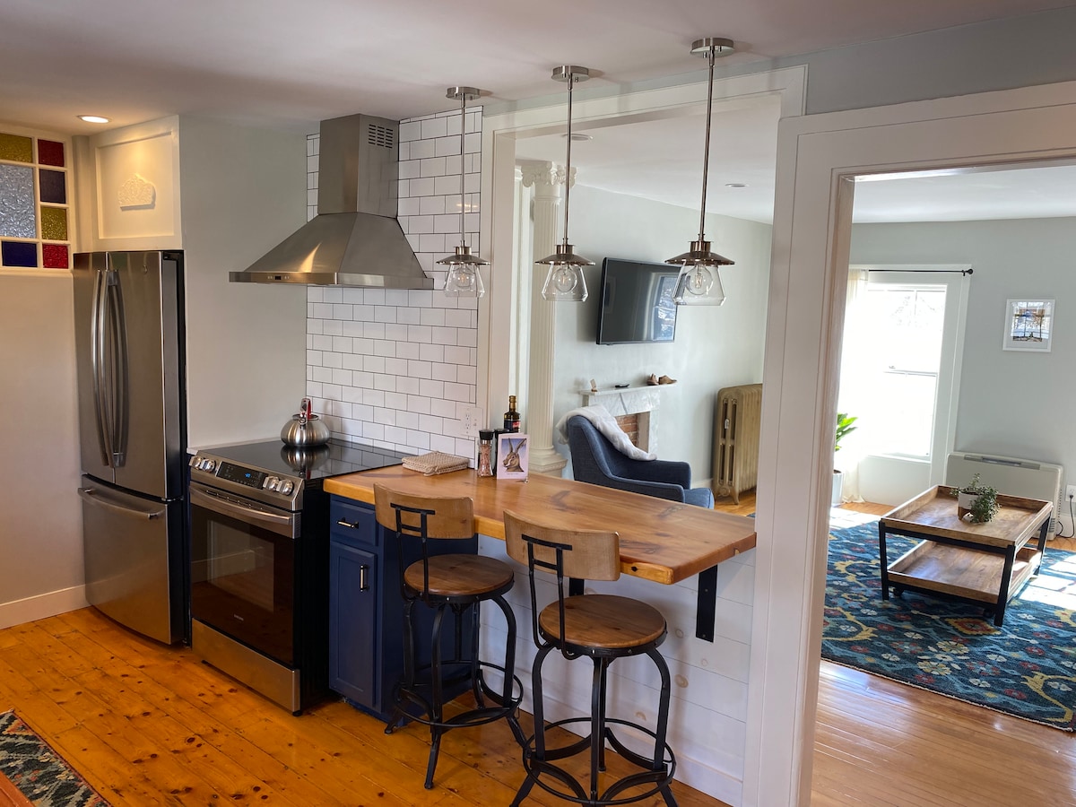This new, very private apartment attached to our home is in a quiet and picturesque environment minutes away from Dock Square. It's great for couples, solo adventurers and families with one child. If you are seeking to spend the day at one of the beautiful Kennebunk beaches they are just minutes away. We are committed to environmental sustainability and the apartment is powered by solar energy. A new outdoor hot tub was recently installed in February, 2024! We look forward to your visit!