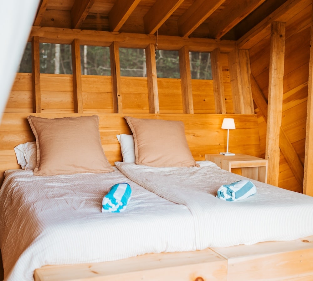 We built the Wren Cabin to be a serene space filled with light and art and with lots of cozy details. Lofted ceilings, a spiral staircase and large open concept with lofted bedroom. The cabin also has a gorgeous wood-fired sauna for those colder days. Wren cabin has a large wraparound deck for relaxing and an outdoor fire pit, as well as shared access to Adams Pond. The space is modern Scandinavian, light and aery, and filled with thoughtful details.