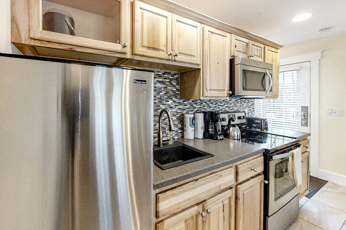 This unit is a separate guest suite in the basement of my home. You have a private entrance with parking right near the entrance. Kitchenette has microwave, full sink, toaster oven, hot plate, crock pot, fridge, coffee maker, dishes, and ample counter space/cabinets, and gas grill (NO STOVE). Property is in a quiet neighborhood on Little River, with kayak access at the community dock. It's a quiet neighborhood in East Boothbay but near everything the Boothbay Region has to offer!