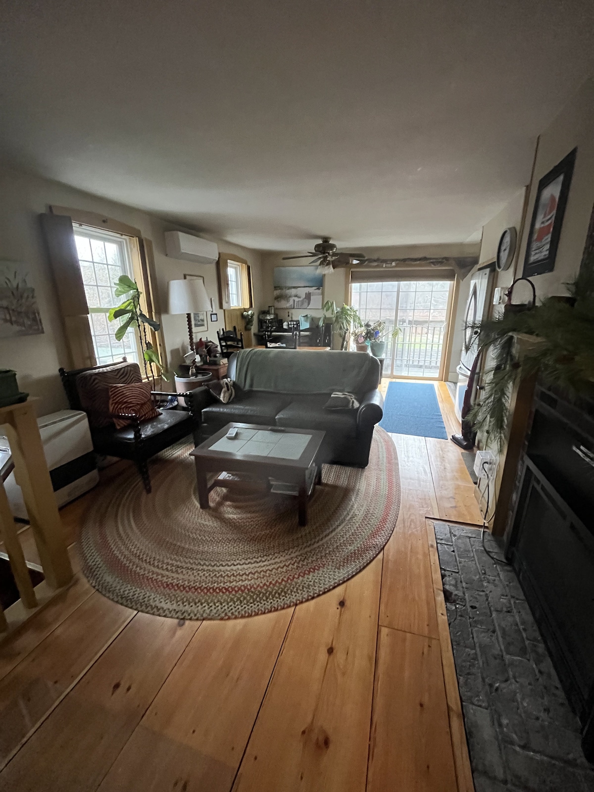 Built roughly 200 years ago, the traditional cape housing this first-floor apartment is located on a hilltop above the Royal River, just steps from restaurants, trails, and waterfront. It's been thoroughly renovated, and features pretty much all the comforts of home—including a full kitchen with dishwasher, a wood-burning fireplace insert, an all-natural mattress (super comfy), and a clawfoot tub-equipped bathroom. Oh, and if you're bringing a third, let me know—and I'll roll in the rollaway.