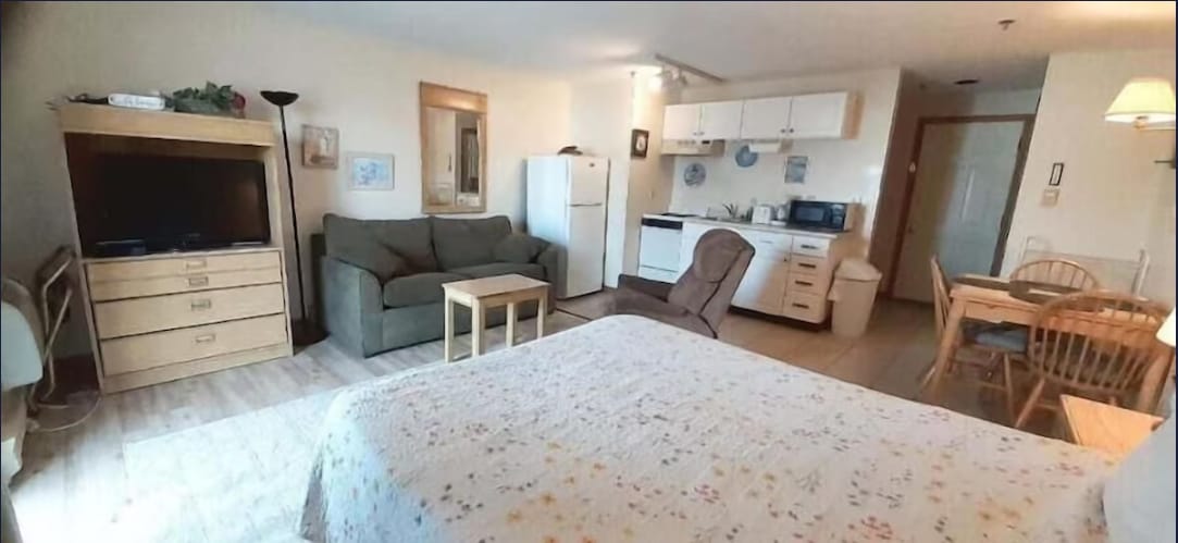 Located on iconic Old Orchard Beach within a 1 minute walk to the beach. Super comfy, Peekaboo ocean views, WiFi, private parking spot. Superb location. Newly renovated. Private bedroom, upscale bathroom with tile, cooking/dining area and other room with couch/TV. Within walking distance to include popular attractions Pirate's Cove, Palace Playland and OOB Pier. Convenience stores, laundry and restaurants just blocks away.